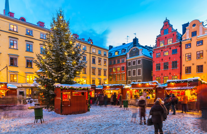 Situat in inima orasului vechi din Stockholm, Stortorget julmarknad – piata traditionala de Craciun din piata principala a orasului – cu greu ar putea dori o locatie mai buna. Datand din 1837, este cea mai veche piata de Craciun din Suedia, iar cele 40 de mici tarabe rosii se imbina perfect cu decorul istoric.