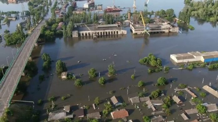 Filmarile de la Orsk si Orenburg au aratat apa care acopera strazile, presarata cu case cu un singur etaj.
